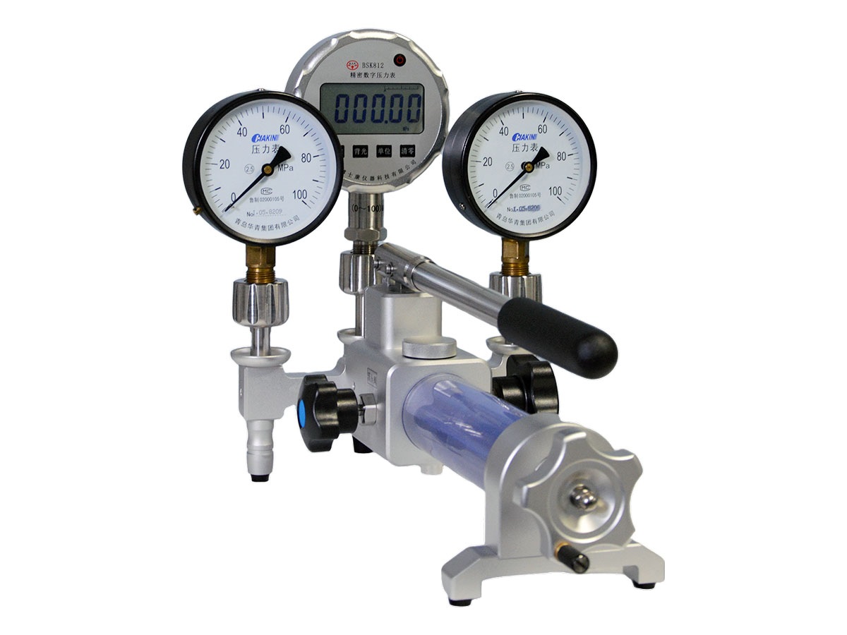 BSK210B便携式液压泵,是我公司在BSK210A的基础上进行升级优化。其最大特点是:增加了第三个输出口,同时可以检定2块被检表,与2个输出口相比效率明显提升了一倍,同样是采用开放式结构、超合金材料制造,关键部件采用航空碳纤维密封材料,不仅耐高压而且密封可靠。它结构简单、操作省力、重量轻、配备铝合金箱子非常便于携带;还采用了双活塞增压设计原理;且预压快、打压轻;螺旋式增压方式非常轻松;每个输出口都加装有过滤帽、以防被检表杂质进入系统。因此,无论从耐用性上,还是密封性上,都是手钳式液压泵不可比拟的。可现场校验0~100MPa的量程范围内任何压力仪表,与我公司生产的BSK863智能压力校验仪/BSK813标准数字压力表配合,构成便携式压力校验系统。主要用于校验压力(差压)变送器、压力传感器、压力开关、精密压力表、普通压力表、及其它压力仪器仪表等,是石油、化工、冶金、国防和计量部门计量校准的理想工具。