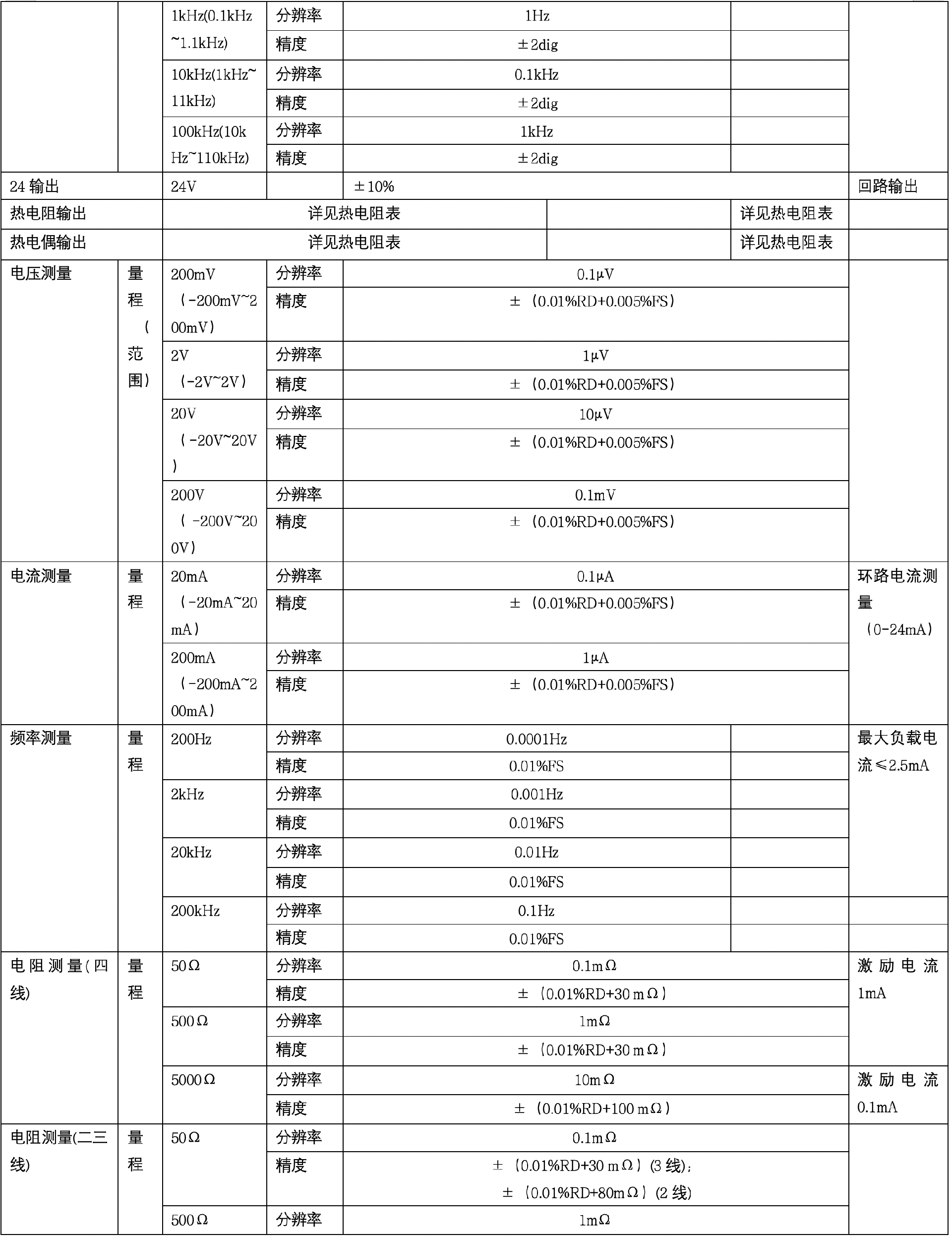 l 测量/输出:电压、电流、电阻、频率、脉冲、开关量,其中电流输出支持有源、无源;