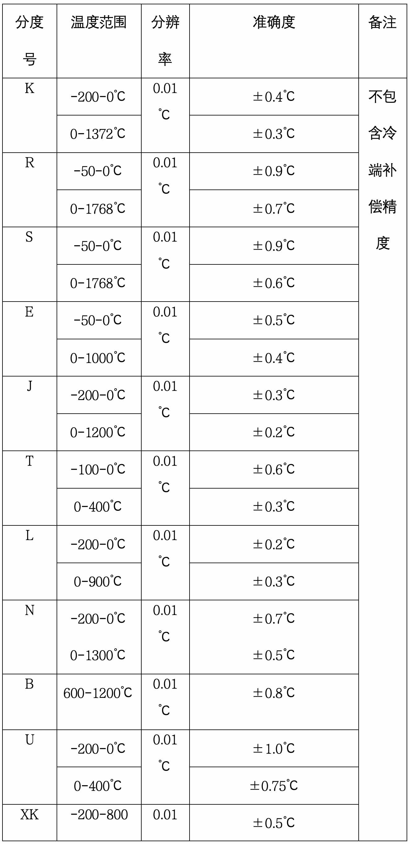 l 热电偶种类:R,S,K,E,J,T,N,B,L,U,XK,WRE325,WRE526;