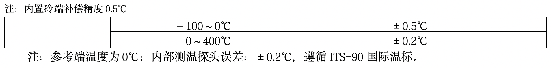 l 热电偶测量和输出提供内置、外置和手动3种冷端温度补偿方式,其中外置参考端采用A级Pt100铂电阻;